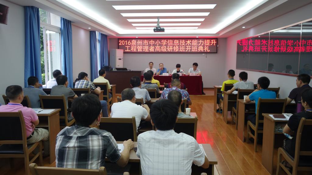 6月28日上午,我校培训学院2016泉州市中小学信息技术能力提升工程管理者高级研修班在重庆电大举行开班式。重庆电大继续教育学院院长赵渝,培训学院院长林永周、副院长江克英,泉州市县教育局领导、进修校校长、培训部主任等30多人参加了开班式。开班式由继教网重庆办事处况杰主持。