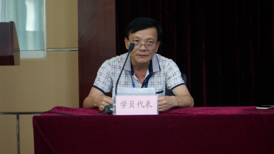 莆田秀屿区东峤中学曾金灿校长代表全体学员发言,表示将会把握机会,明确学习目标,制定学习计划,摆正位置,主动学习,认真遵守培训班各项规章制度,高质量的完成学习任务。