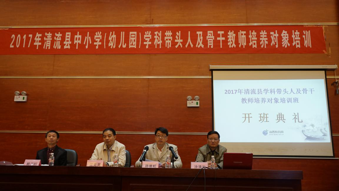 10月28日上午,由培训学院海西教育网承办的2017年清流县学科带头人及骨干教师培养对象培训班在清流第一中学学举行开班仪式。副校长陈展虹、培训学院副院长江克英、清流县教师进修学校校长涂清发、副校长赖汉郎及各中小学(幼儿园)学科带头人和骨干教师培养对象316人参加了开班式。赖汉郎主持仪式。