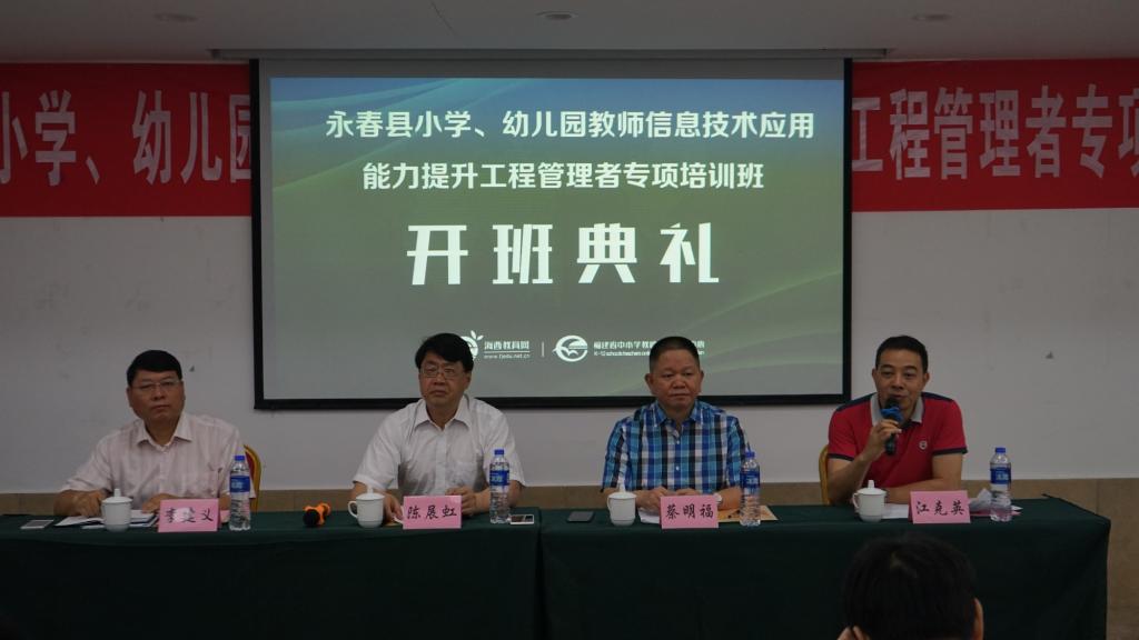 5月7日上午由福建电大海西教育网和永春县教师进修学校携手开展的永春县小学、幼儿园教师信息技术应用能力提升工程管理者专项培训班在福州举行开班仪式。福建广播电视大学副校长陈展虹、培训学院副院长江克英、永春县教育局副局长蔡明福、永春县教师进修学校副校长李建义及永春县各中心小学、县直学校、九年一贯制学校、幼儿园分管信息技术能力提升工程的校(园长)共48人出席了开班仪式。仪式由江克英主持。