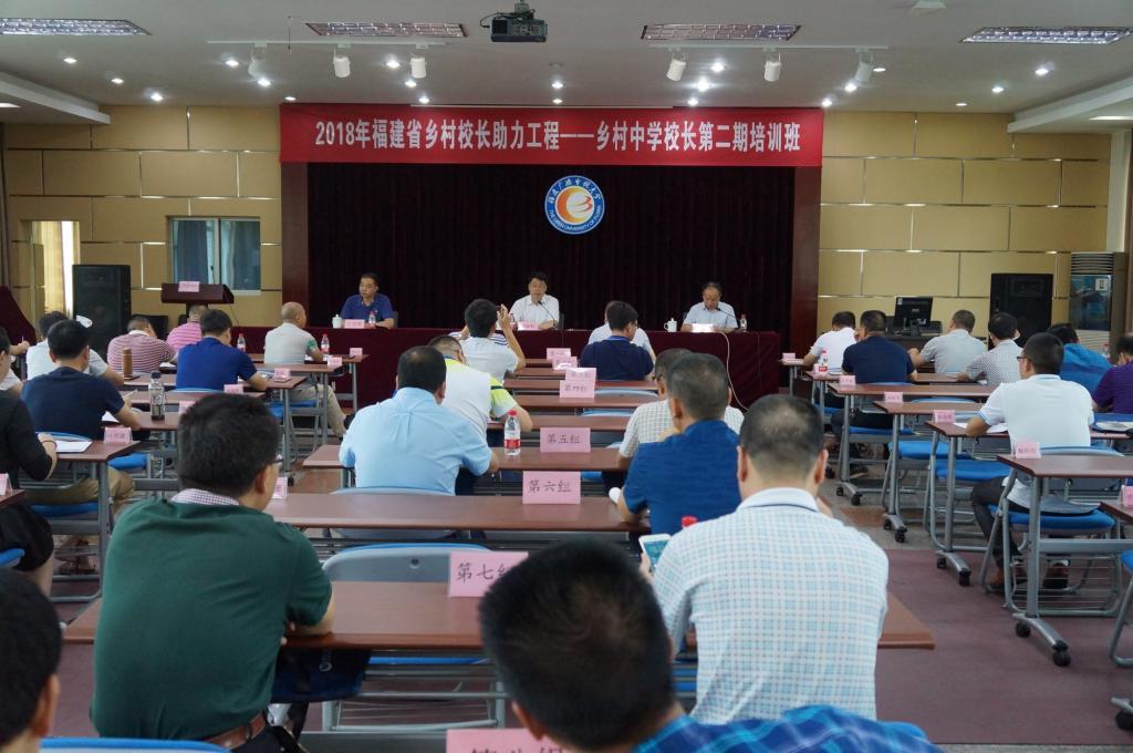 据悉,2018年,学校根据福建省教育厅《关于下达2018年第一批省级基础教育师资培训计划的通知》(闽教办师〔2018〕7号)精神实施乡村校长助力工程项目,为期三个月,分三个阶段进行,通过专题讲座、交流研讨、网络研修、参观考察、跟岗学习等形式进行。目前开展的是该培训项目的第一阶段。通过四批培训班,共计培训乡村校长335人。