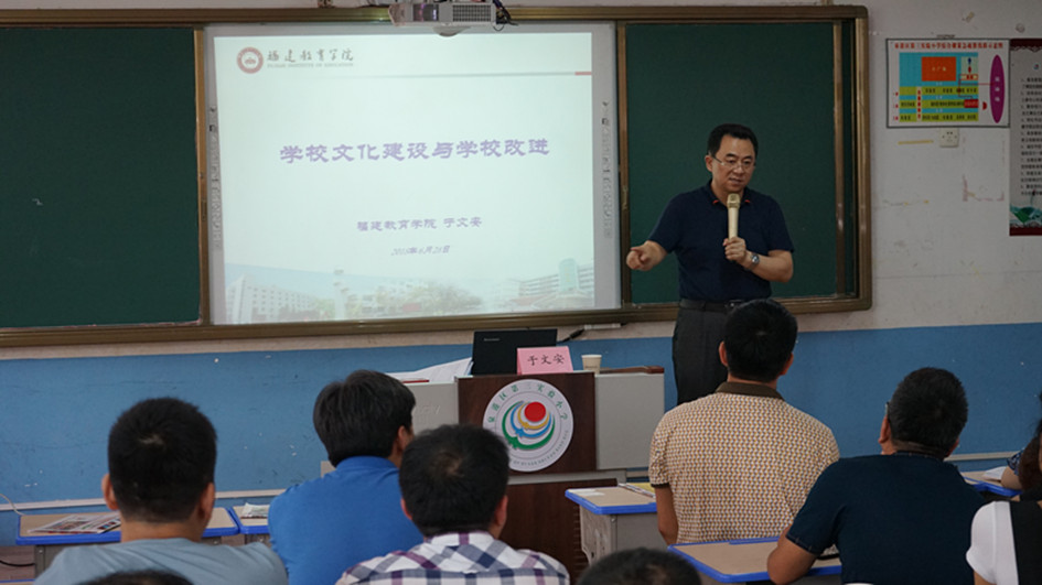 活动点评环节中,于文安对五位学员代表的发言内容进行了点评。随后,他作了《学校文化建设与学校改进》专题讲座,在现场产生了良好的共鸣和反响。