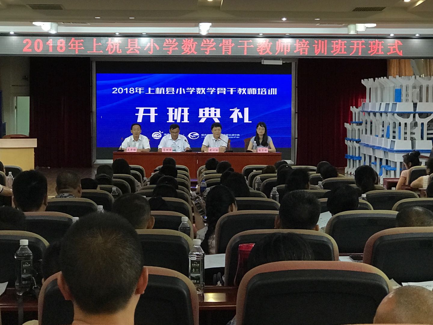 为提高上杭县小学数学骨干教师的专业知识和课堂教学能力,7月20日上午,上杭县小学数学骨干教师培训班在上杭县实验小学拉开序幕。福建广播电视大学培训学院培训科副科长熊月林,上杭县教育局局长黄从廷,教师进修学校校长高四华、培训处主任吴开雄及各小学数学骨干教师121人一同出席了开班仪式。仪式由高四华主持。