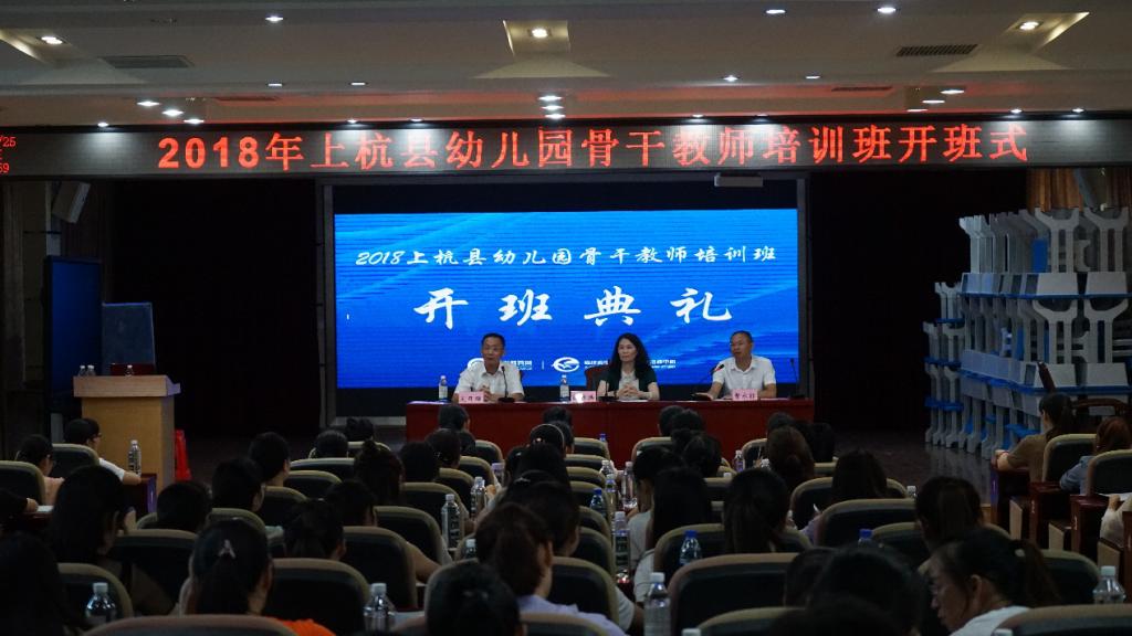 7月25日上午,2018上杭县幼儿园骨干教师培训班在上杭实验小学学术报告厅举行开班仪式,福建广播电视大学培训学院副院长欧雅洪、上杭县教育局副局长曹永标、教师进修学校培训处主任吴开雄及上杭县各幼儿园骨干教师共计120人出席开班式,仪式由曹永标主持。