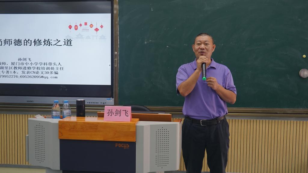 本次培训时间为8月18日至8月21日,连江职业中专学校校长林榕、湖里区教师进修学校培训处主任孙剑飞、华侨大学继续教育学院副教授刘以榕、福州金山小学副校长林碧珍、中国心理学家协会国家心理咨询师吴国阳老师、湖里区教师进修学校教科室主任朱淑秀、宁德市教师进修学院书记缪剑峰、厦门市第一中学数学金牌教练、高级教师王淼生、福建教育学院副教授于文安、集美大学教师教育学院教授罗晓、福建省海峡基础教育研究院常务副院长唐羊等十一位工作经验丰富的专家负责授课,分别围绕师德师风、教师专业成长、教科研、沟通管理四大模块展开授课,在整个培训过程中,学员们积极主动,认真学习,互动良好。