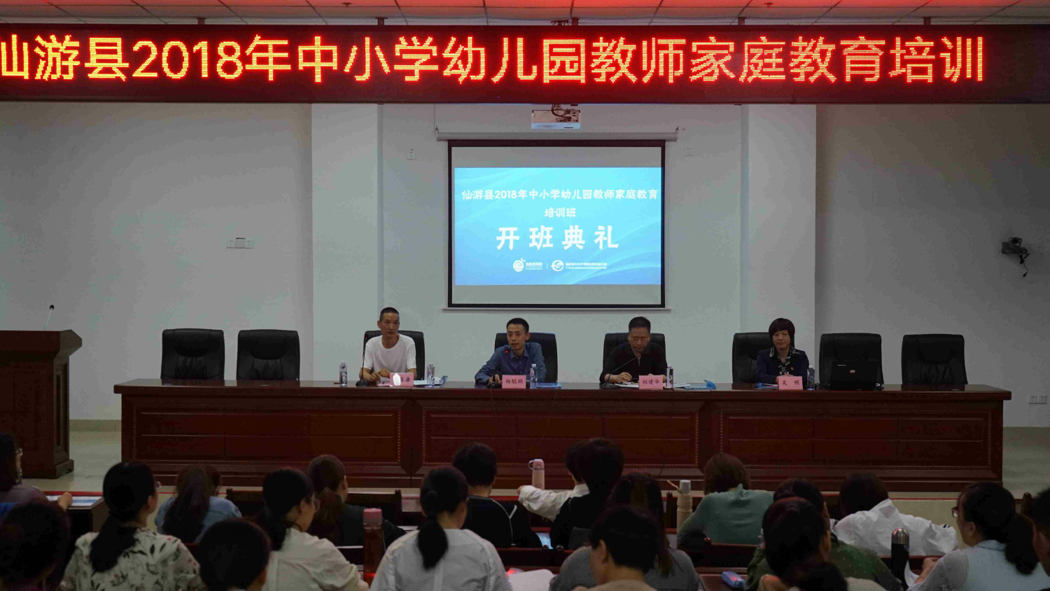 为了进一步加强未成年人思想道德建设,充分发挥家庭教育在学生成长过程中的重要作用,福建广播电视大学与仙游县教师进修学校于10月23日在仙游共同举办仙游县2018年中小学幼儿园教师家庭教育培训班。福建广播电视大学培训学院副院长杨聪颖、仙游县教师进修学校副校长郑建华及仙游县各学校(园)分管德育的副校长、处室主任、心理健康教育教师、班主任等共计200人参加开班式,开班式由仙游县教师进修学校培训处主任陈喜亷主持。