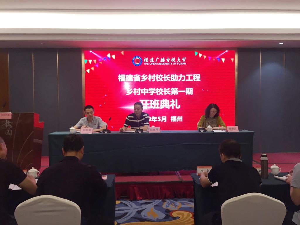 5月27日上午,福建省乡村校长助力工程首期中学校长培训班在福州梅园酒店举行开班仪式。福建广播电视大学培训学院院长江克英、副院长杨聪颖、副院长欧雅洪以及来自全省各地的64名乡村中学校长参加了开班式,会议由培训学院副院长欧雅洪主持。