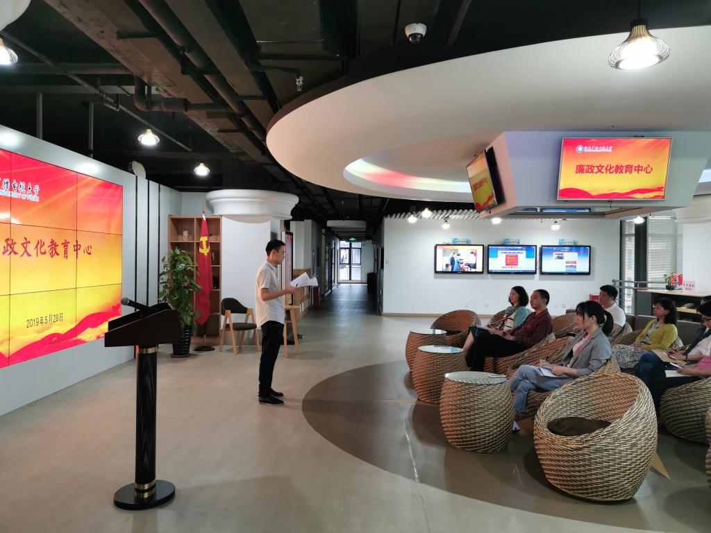 全体同志通过校监审处蔡科长介绍和参观,了解了“廉政文化教育中心”建设的历史、初衷及“廉政知识在线测试平台”等各区块功能,通过观看“清廉中国”微视频中的警示教育片《公务接待》、《牙病与心病》及现场交流心得、畅谈感受,“筑牢廉洁防线永远在路上”。
