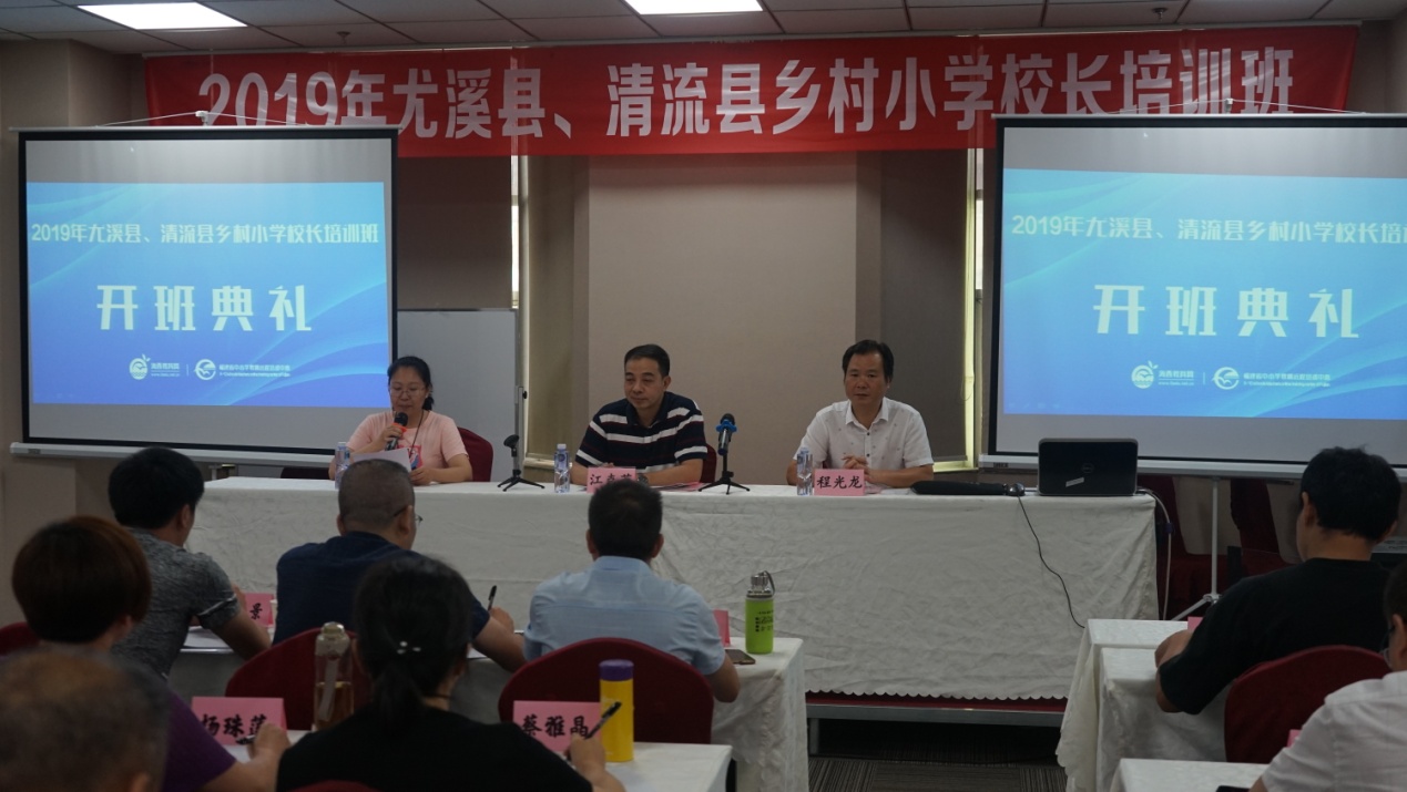 7月15日下午,2019年尤溪县、清流县乡村小学校长培训班在福州市拉开帷幕,本次培训由福建广播电视大学培训学院与尤溪县、清流县教师进修学校联合举办。福建广播电视大学培训学院院长江克英,尤溪县教师进修学校副校长程光龙和来自尤溪县、清流县共计56名学员出席了开班仪式。仪式由福建广播电视大学海西教育网潘捷老师主持。