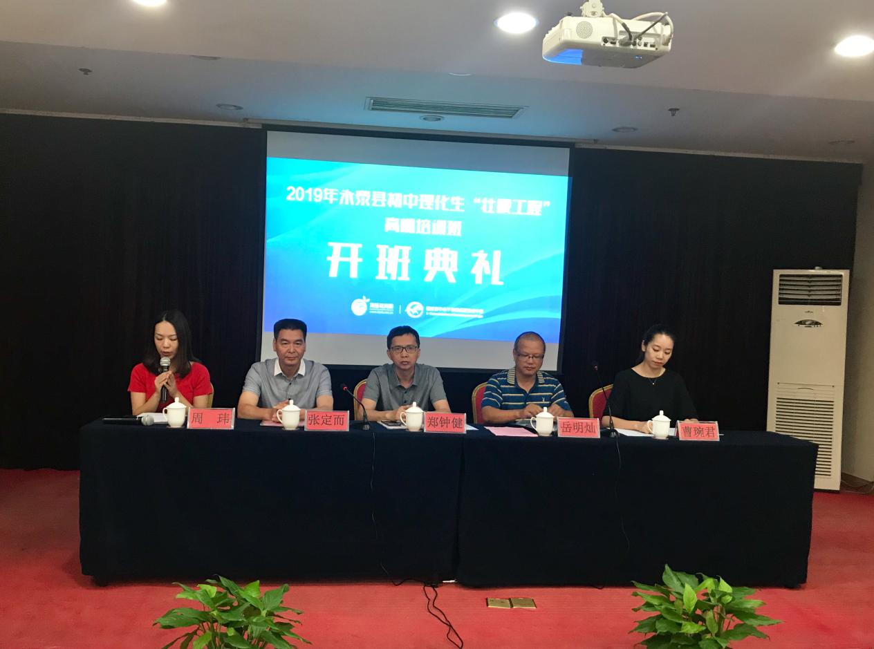 7月25日上午,2019年永泰县初中理化生“壮腰工程”高端培训班在长沙举行开班仪式。永泰县教师进修学校副校长郑钟健、永泰县教育局组织人事科副科长岳明灿、永泰县教师进修学校中学教研室副主任张定而、福建广播电视大学海西教育网面授培训部主任曹琬君及58位永泰县初中理化生教研组长、2018年、2019年中考优胜者参加开班式,开班仪式由福建广播电视大学海西教育网远程培训部主任周玮主持。