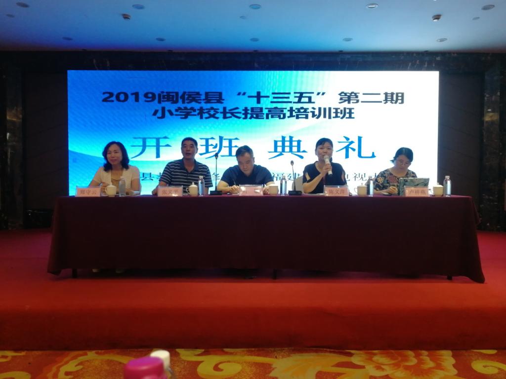 8月7日上午,2019年闽侯县“十三五”第二期小学校长提高培训班在宁波市拉开帷幕,本次培训由福建广播电视大学中小学校长培训中心与闽侯县教师进修学校联合举办。来自闽侯各小学的校长及闽侯教育局、进修校的领导共计82学员出席了开班仪式。仪式由福建广播电视大学海西教育网卢祥燕主持。