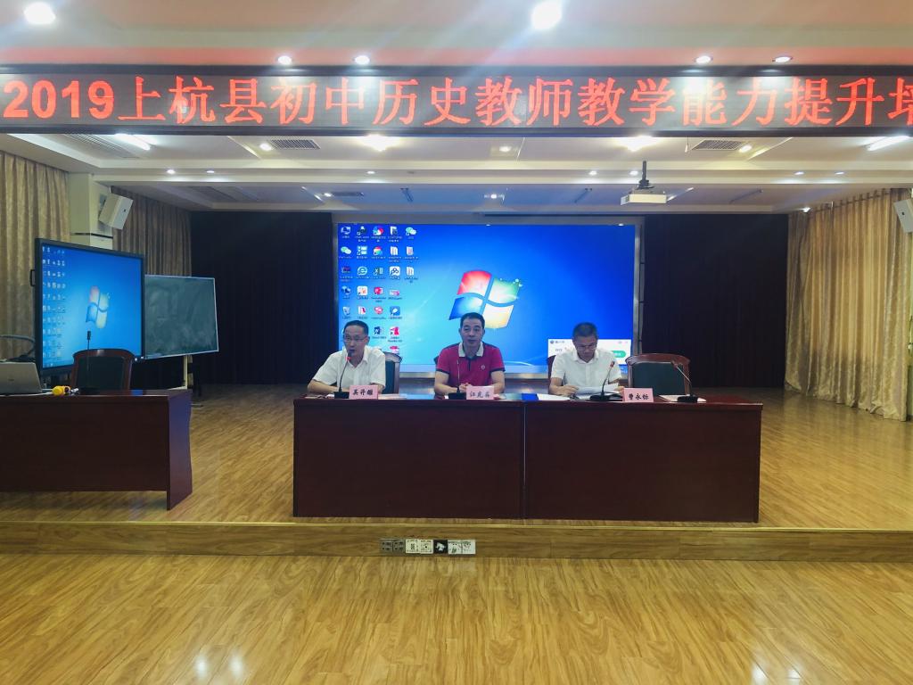 8月15日上午,2019年上杭县初中历史教师教学能力提升培训班在上杭县实验小学拉开帷幕,本次培训由福建广播电视大学培训学院上杭县教师进修学校联合举办。福建广播电视大学培训学院院长江克英,上杭县教育局副局长曹永标,上杭县教师进修学校培训部主任吴开雄和上杭县县直及各乡镇初中在岗历史教师出席了开班仪式。仪式由上杭县教师进修学校培训部主任吴开雄主持。