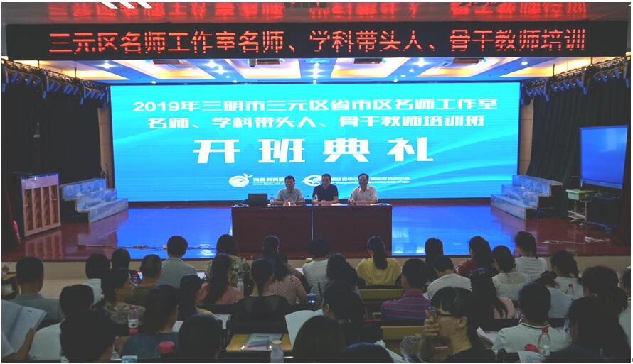 8月17日上午,2019年三明市三元区省市区名师工作室名师、学科带头人、骨干教师培训班在三元区举行开班仪式。福建广播电视大学培训学院院长江克英、三元区教育局副局长尤鹏辉、三元区教师进修学校副校长陈新书及238位三元区省市区名师工作室名师、学科带头人、骨干教师参加开班式,开班仪式由三元区教师进修学校副校长陈新书主持。
