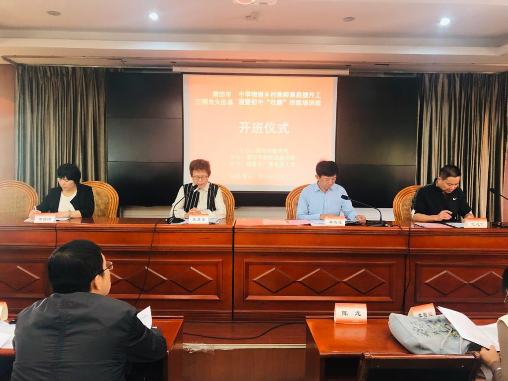 11月11日上午,莆田市初中物理乡村教师素质提升暨初中“壮腰”市级培训班在莆田市教师进修学院拉开帷幕,本次培训由福建广播电视大学培训学院与莆田市教师进修学院联合举办。莆田市教师进修学院副院长李德煌、轮训部主任李月萍、轮训部副主任戴建仁、黄碧玲和莆田各区中学教师共计81名学员参加了开班仪式。仪式由莆田市教师进修学院轮训部主任李月萍主持。