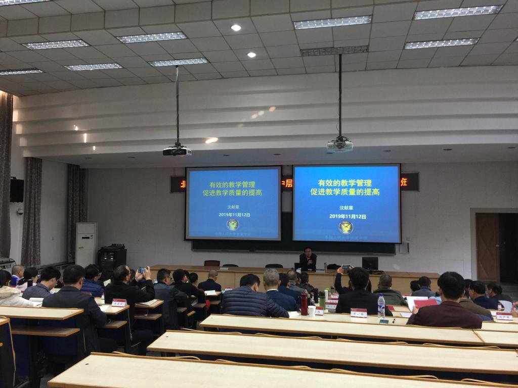 开班仪式结束后,中国人民大学附属中学副校长,特级教师沈献章给学员们上了第一课:《有效的教学管理促进教学质量的提高》。
