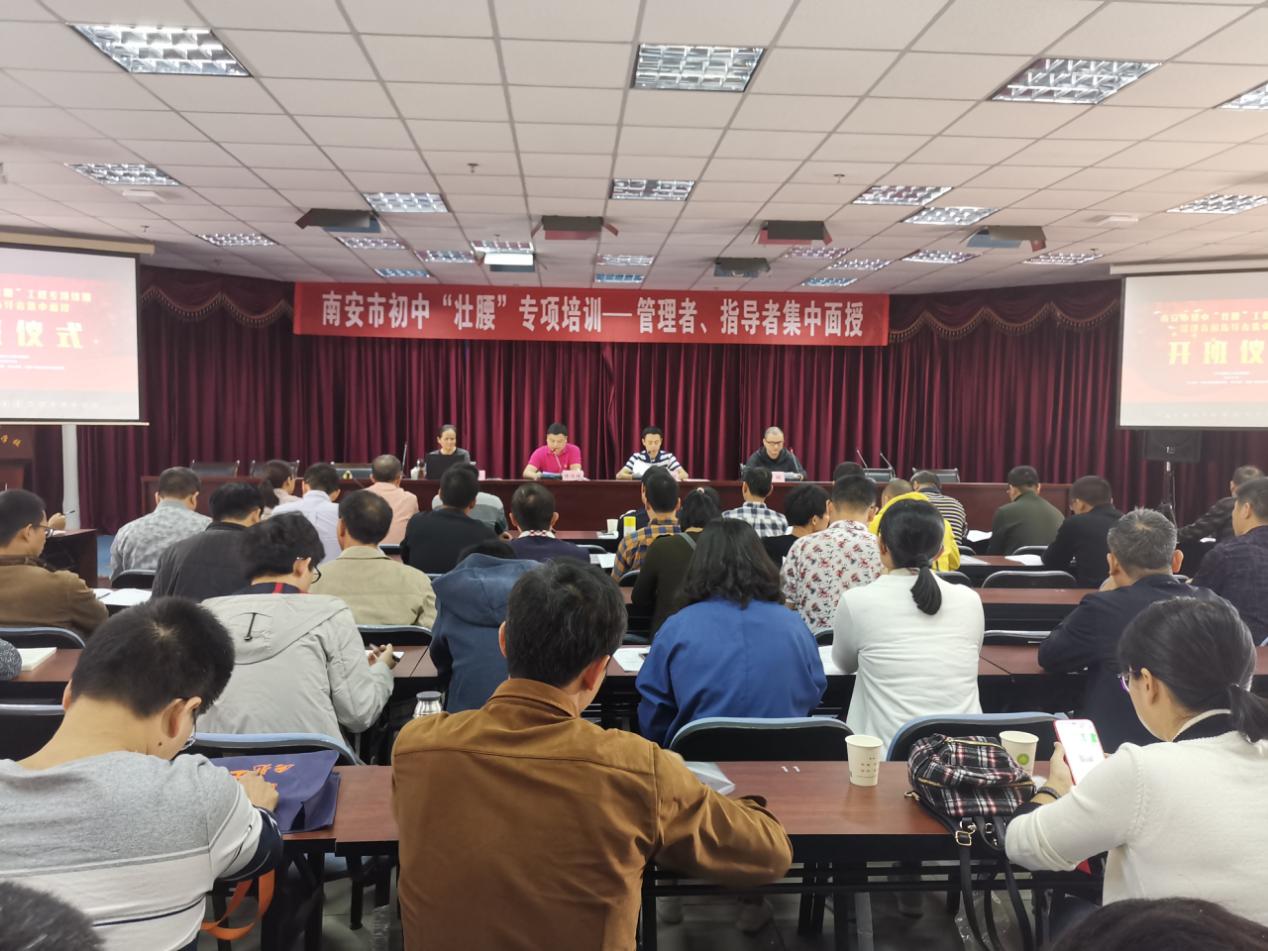 11月15日上午,由福建广播电视大学海西教育网承办的南安市初中“壮腰”工程专项培训管理者和指导者研修班在南安市教师进修学校拉开帷幕。福建广播电视大学培训学院副院长杨聪颖、南安市教师进修学校副校长陈信雄及初中校教务主任、完中校初中教研室主任、各初中教研片区学科优秀教师共计239人参加开班式。