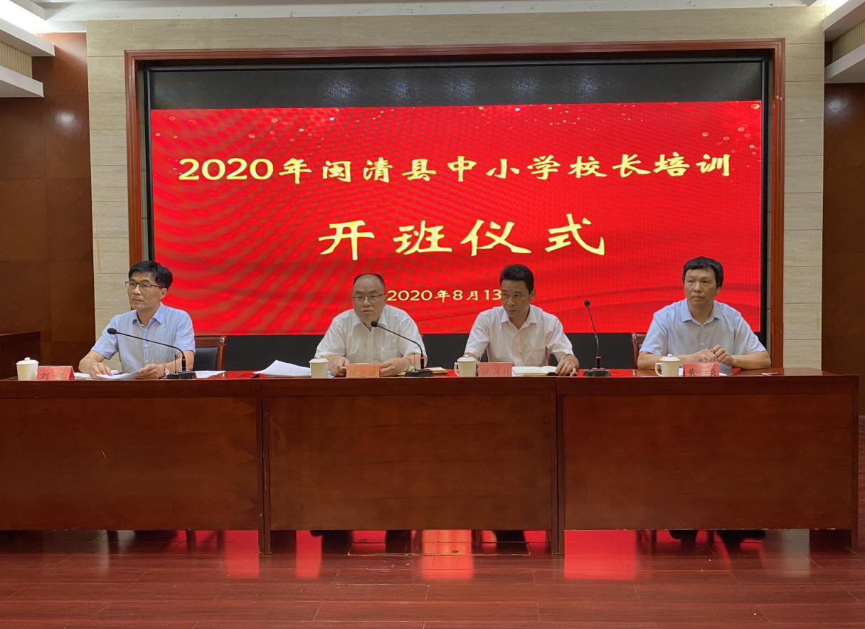 为了深入学习贯彻习近平新时代中国特色社会主义思想和党的十九大精神,提升干部卓越领导能力,推动新时代教育高质量发展。8月13日上午,由福建广播电视大学与闽清县教师进修学校联合举办的2020年闽清县中小学校长培训经多方协调、努力和精心筹备,在闽清县顺利开班。中共闽清县委副书记林志斌、县委办公室副主任姚兴柱、教育局局长刘强、闽清县教师进修学校校长黄如炎及闽清县教师进修学校校级领导、各中学、乡镇中心小学、直属校、闽清职专的校长、分管教学的校级领导参加开班式,开班仪式由教育局局长刘强主持。