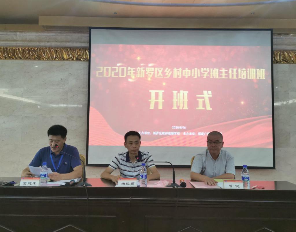 为充分发挥班主任管理作用,提高学生管理工作的实效性、前瞻性,建设一支师德高尚、理念先进、业务精湛、讲求实效的班主任队伍,8月16日上午,由福建广播电视大学和新罗区教师进修学校联合举办为期五天的新罗区2020年乡村中小学班主任培训班在上杭县拉开帷幕。福建广播电视大学培训学院副院长杨聪颖、新罗区教师进修学校培训处主任曾健,以及来自龙岩市新罗区乡村中小学班主任共计168人出席了开班仪式。仪式由福建广播电视大学培训学院办公室主任俞建军主持。