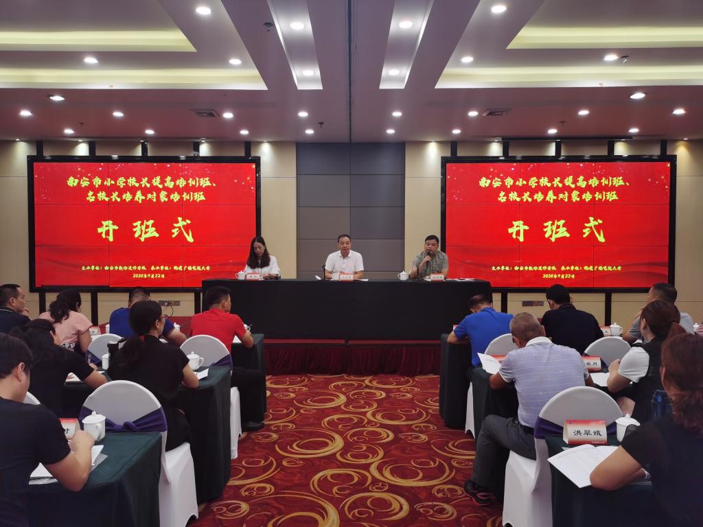 为全面推进基础教育的改革与发展,进一步加强中小学校长队伍建设,提高校长的党修养、政治素质,坚定理想信念,落实立德树人根本任务。9月22日上午,由福建广播电视大学和南安市教师进修学校共同举办的南安市小学校长提高培训班、名校长培养对象培训班在古田县拉开帷幕。福建广播电视大学培训学院院长江克英、南安市教师进修学校副校长陈信雄和南安市小学校长、名校长培养对象共计95人参加了开班仪式。开班仪式由海西教育网远程培训部主任周玮主持。