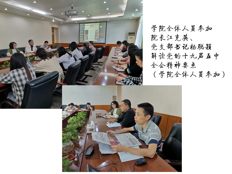 江克英院长指出,习近平总书记在十九届五中全会上所作的工作报告和重要讲话,统揽全局、催人奋进,为全面建设社会主义现代化国家指明了前进方向、提供了行动指南。为此学校党委在短时间内组织了党委中心组学习,校党委书记陈兴炎分校区对全体党员干部进行宣讲。因此,学院全体干部党员要立即行动起来,迅速兴起学习热潮,把学习宣传贯彻党的十九届五中全会精神和总书记重要讲话精神作为重要政治任务加以落实。