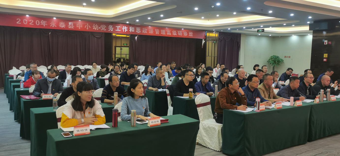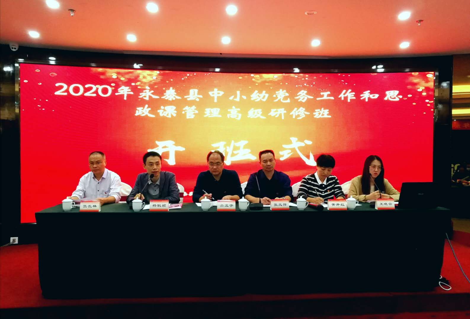 为深入贯彻落实党的十九大精神,以习近平新时代中国特色社会主义思想为指导,大力提高党员干部的党性修养、政治素质和业务技能,帮助干部筑牢信仰之基、从政之基、廉政之基,激发干部新时代新担当新作为,11月9日上午,由福建广播电视大学和永泰县教师进修学校联合举办的2020年永泰县中小幼党务工作和思政课管理高级研修班在上杭县拉开帷幕。福建广播电视大学培训学院副院长杨聪颖、永泰县教师进修学校副书记吴孟宇、永泰县教育局机关党支部书记张兆祥、永泰县教师进修学校培训处副主任黄开红、永泰县教育局人事科干部张长林以及来自永泰县中小幼党务工作者和思政课管理者共计72人出席了开班仪式。仪式由福建广播电视大学培训学院王晓云主持。