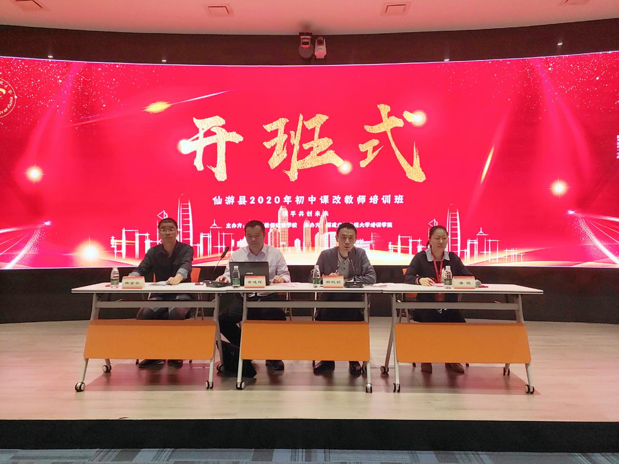 11月23日,由福建广播电视大学培训学院和仙游县教师进修学校联合举办的仙游县2020年初中课改教师培训班在福建广播电视大学如期开班。福建广播电视大学培训学院副院长杨聪颖、仙游县教师进修学校副校长黄建辉、仙游县教师进修学校林金水老师出席了开班仪式。来自仙游县初中课改教师、中学教研员50人参加本次培训。开班式由福建广播大学培训学院潘捷老师主持。