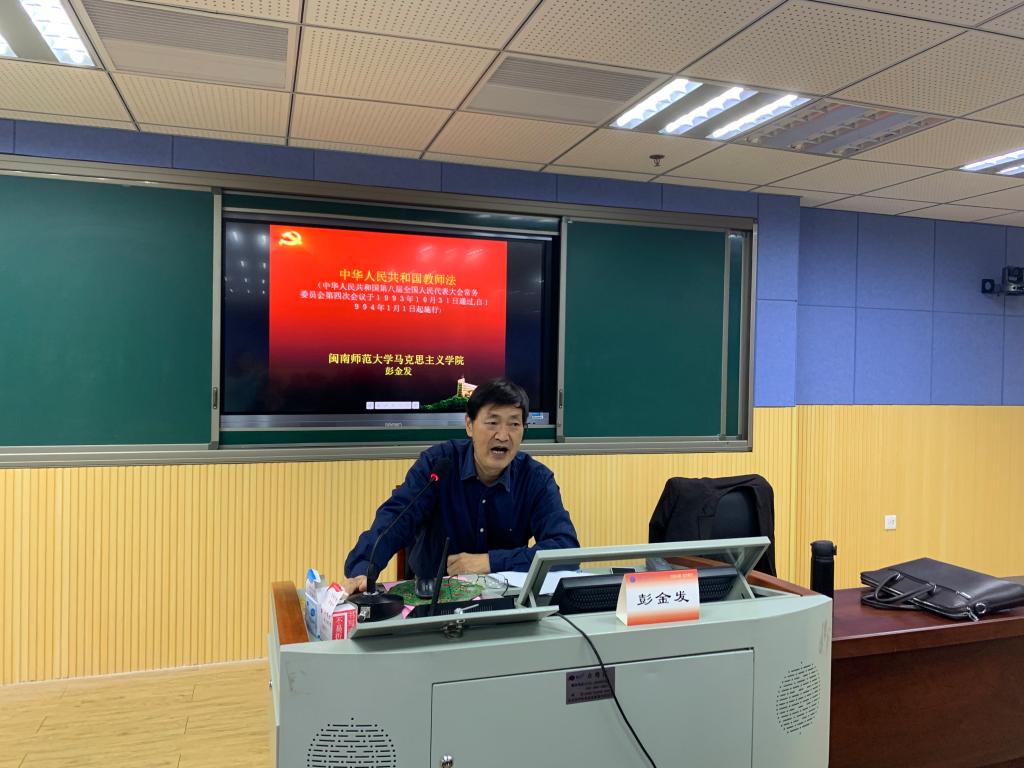 开班仪式后,由闽南师范大学马克思主义学院原院长、教授彭金发做了《教师教育法规》的精彩讲座。
