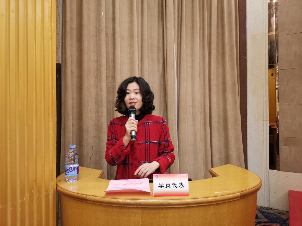 涵江区第二实验小学刘雅敏代表全体学员进行发言。她表示老师们一定会倍加珍惜此次研修之旅,主动的向专家、教授学习请教,专心听好每一节课、做好每一份笔记,积极参与到每一次活动中,继续保持涵江区学科带头人刻苦学习的优良作风。努力做到学有所思、学有所获、学以致用。
