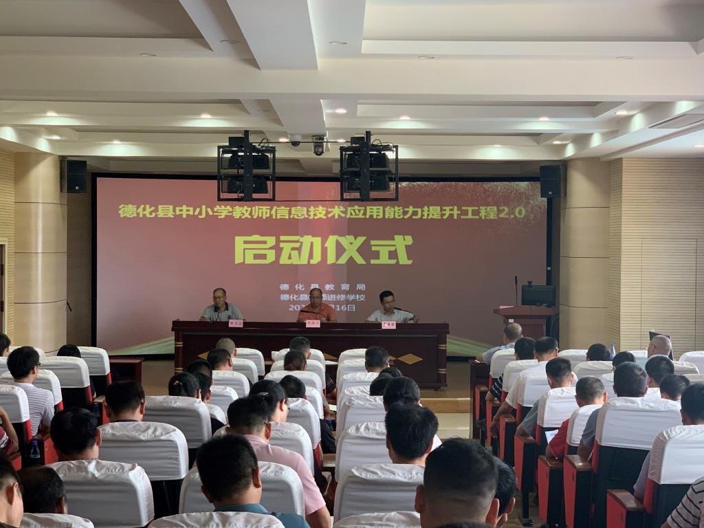 德化县教育局、德化县进修学校高度重视本次启动大会,出席启动大会的领导有德化县教师进修学校校长余德兴、县教育局组织人事股股长陈文滔、县人民政府副校级督学罗德榜及县教育局相关股室负责人,还有各中学、中心小学、县直学校校(园)长和2.0工程项目负责人等合计70人。