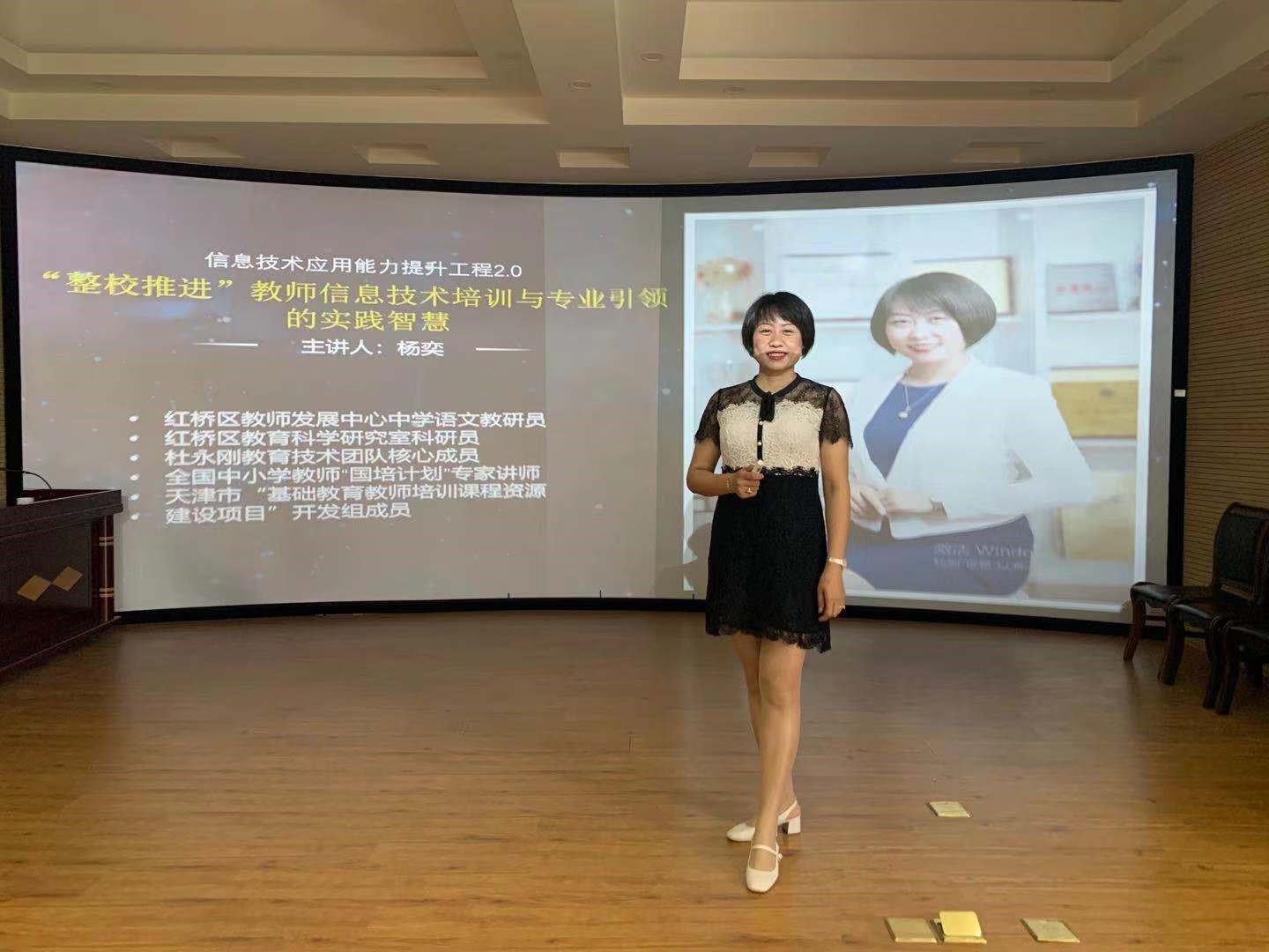 最后,由天津市红桥区教师发展中心教研员杨奕老师作《“整校推进”教师信息技术培训与专业引领的实践智慧》专题讲座。