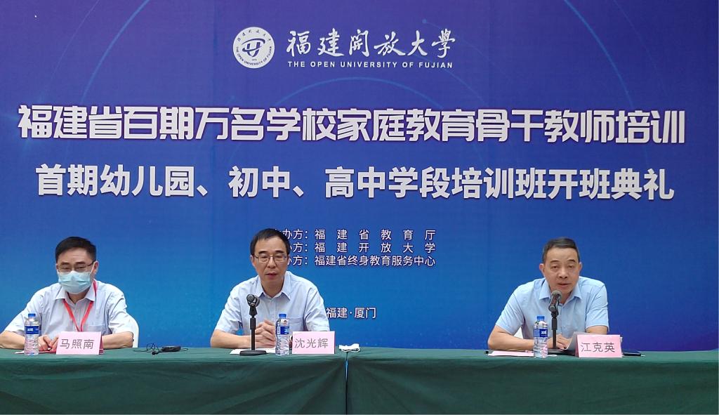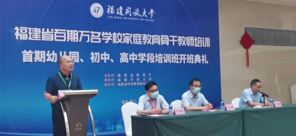 8月2日上午,由福建省教育厅主办、福建开放大学承办、福建终身教育服务中心协办的福建省百期万名学校家庭教育骨干教师培训首期幼儿园、初中、高中学段培训班在厦门可居酒店隆重举办。福建开放大学党委委员、副校长沈光辉,福建省关心下一代工作委员会副主任马照南出席开班仪式,来自全省8个地市的幼儿园、初中、高中骨干教师191名参加了开班仪式。开班仪式由培训学院院长江克英主持。