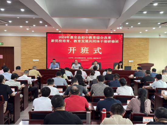 为进一步提升办学内涵,提高办学品质,发挥新优校的示范辐射带动作用,促进惠安县初中教育新一轮优质均衡发展,9月28日上午,由惠安县教师进修学校和福建开放大学联合举办的2024年惠安县初中教育综合改革新优校培育、教育发展共同体干部研修班在福州市举行开班仪式。福建开放大学培训学院副院长、福建省中小学教师远程培训中心常务副主任杨聪颖、惠安县教师进修学校副校长张伟松、惠安县教师进修学校培训处主任陈明忠以及惠安县“新优校”、“教共体”校长、分管教学副校长、教务主任、教科室主任、办公室主任和部分教师,共计70人出席了开班仪式,本次仪式由福建省中小学教师远程培训中心林旭婷主持。