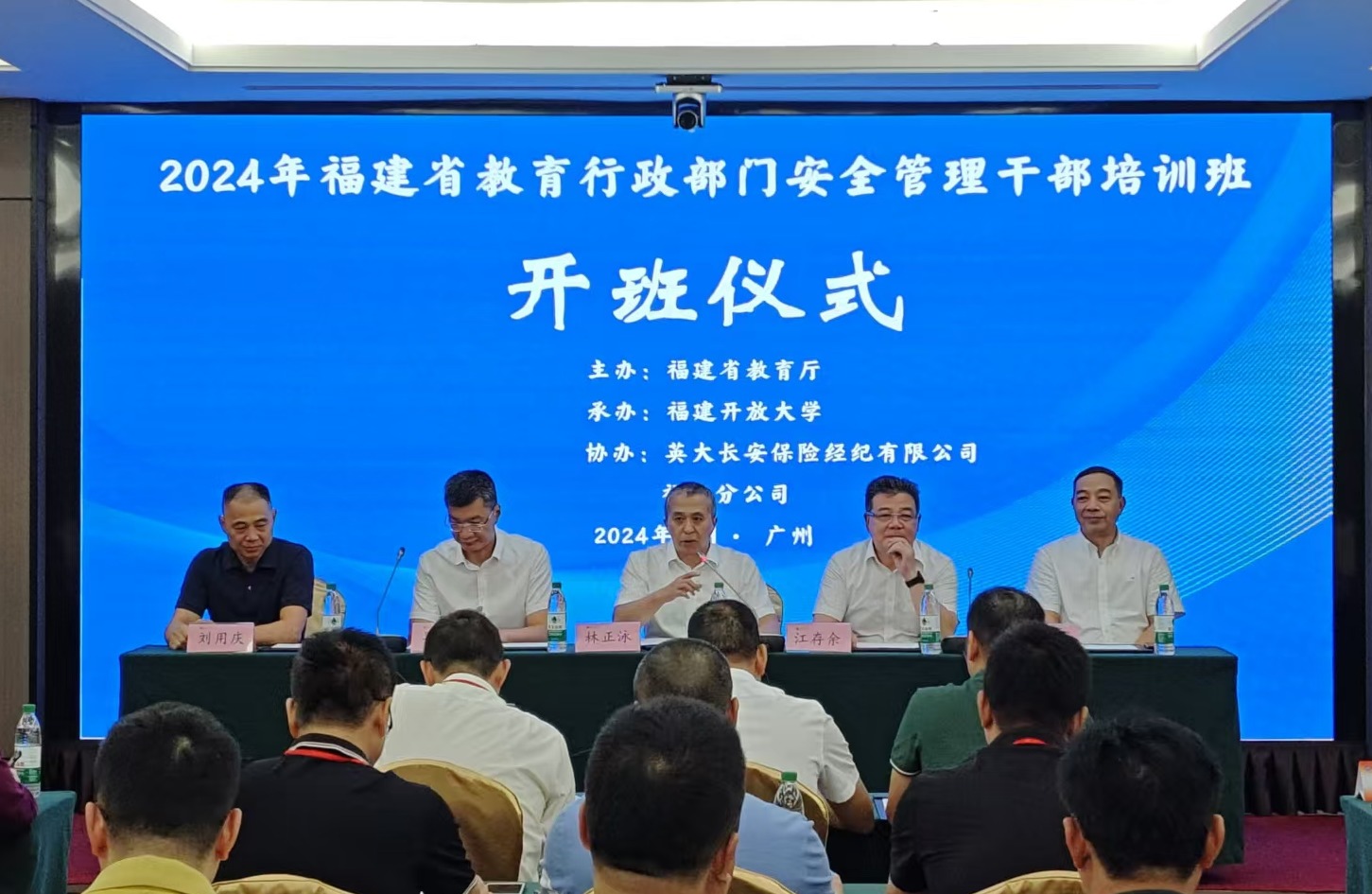 11月5日,为深入学习贯彻习近平总书记关于安全稳定的重要讲话和指示批示精神,扎实推进全省学校安全稳定工作,全面提升教育行政部门的校园安全管理水平和防突应急处置能力,由福建省教育厅主办、福建开放大学承办的2024年安全管理干部培训班在广州开班。开班仪式由省教育厅学校安全工作处处长林正泳主持。